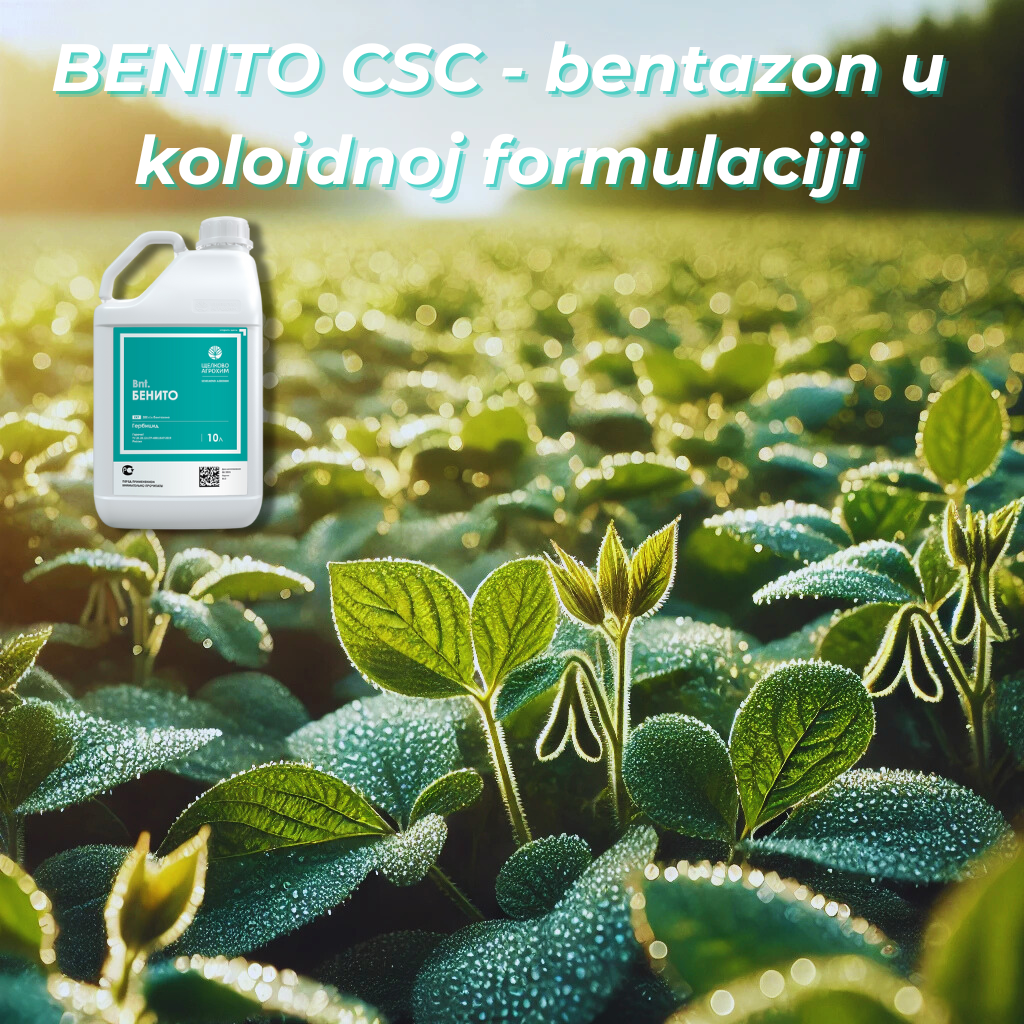 Kompanija Ščolkovo Agrohim ponosno predstavlja Benito CSC, herbicid nove generacije koji postavlja standarde u suzbijanju širokolisnih korova. Razvijen u jedinstvenoj koloidnoj formulaciji, Benito CSC pruža vrhunsku efikasnost i prilagođenost modernim potrebama poljoprivrede, čineći ga idealnim rešenjem za zaštitu useva soje, graška, kukuruza i pšenice.